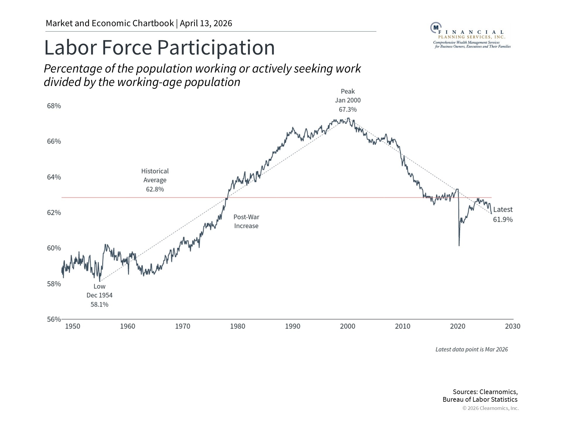 What does all of this mean for investors? Consumers are facing higher costs at a time when the job market is weakening. However, the unemployment rate remains stable, suggesting that those who would like to work are finding jobs. It’s simply the case that there is a smaller fraction of the population actively working today than in the past.
