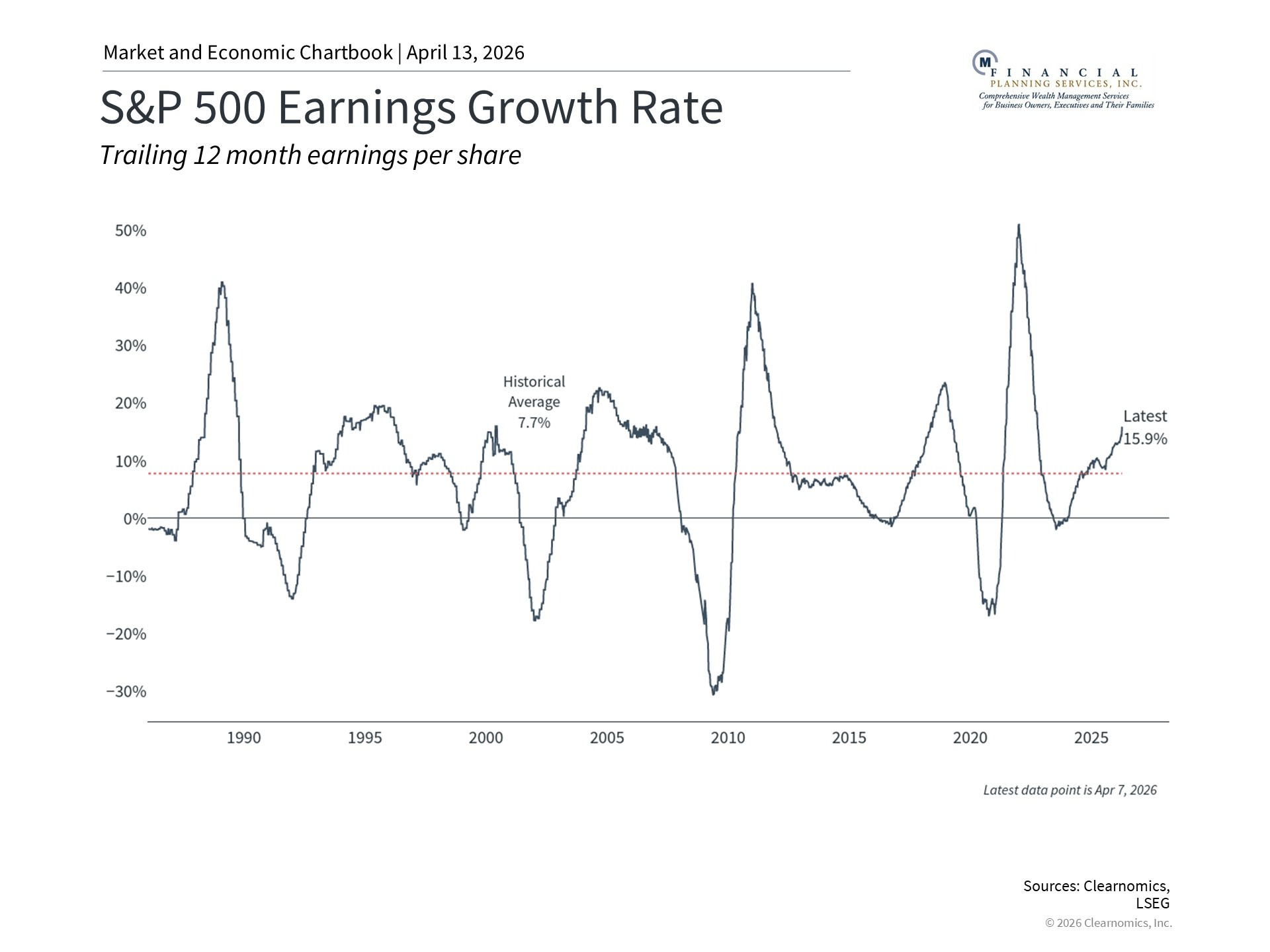 Amid the uncertainty around geopolitics, inflation, and employment, one positive area for investors has been the strength of corporate earnings. Despite the challenges described above, what’s interesting is that consumers have continued to spend, and profit margins have remained high for many companies. Current Wall Street estimates suggest that S&P 500 earnings-per-share have grown approximately 16% over the past twelve months, with expectations for an additional 18% growth over the coming year. These are historically strong numbers, well above the long-term average growth rate of 7.7%.