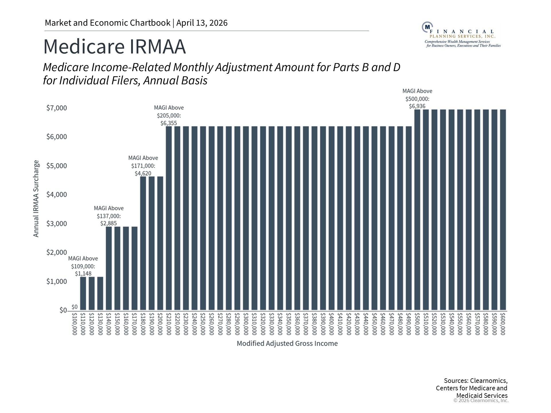 It's also important to understand that the income thresholds for IRMAA and for IRS marginal tax brackets are different. A common strategy when tax planning is to "fill up" a tax bracket by recognizing additional income, such as Roth conversions. However, doing so without considering IRMAA thresholds can inadvertently push you over a cliff, resulting in hundreds or even thousands of dollars in additional annual premiums.