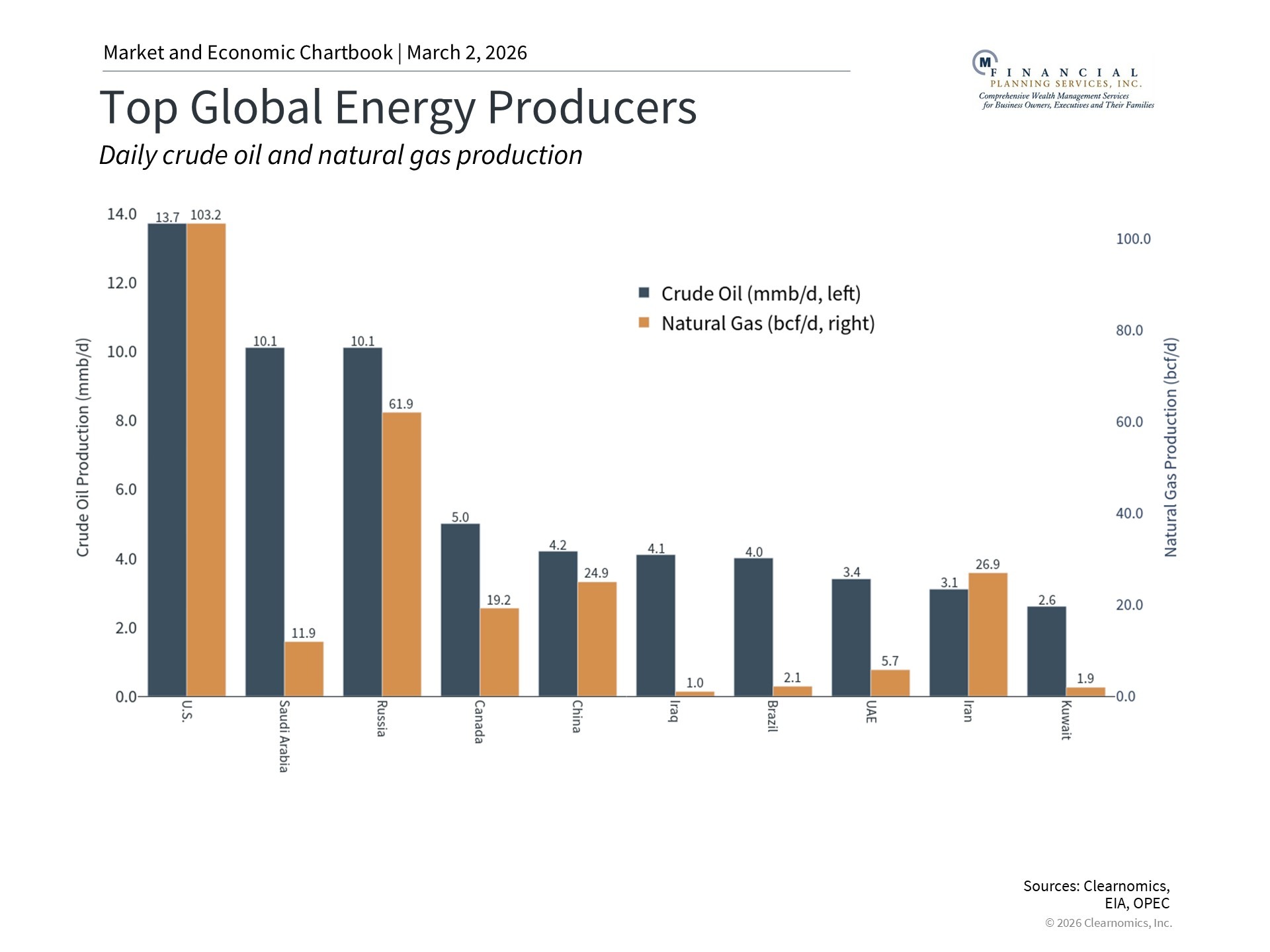 However, some perspective is needed. Current oil prices remain well below the 2022 peak of nearly $128 per barrel when Russia invaded Ukraine. Today's environment is quite different. In 2018, the U.S. also became the world's largest producer of oil and natural gas, with current domestic production exceeding other major producers such as Saudi Arabia and Russia. While the U.S. still relies on global energy markets, this level of production helps to insulate the domestic economy from supply disruptions.