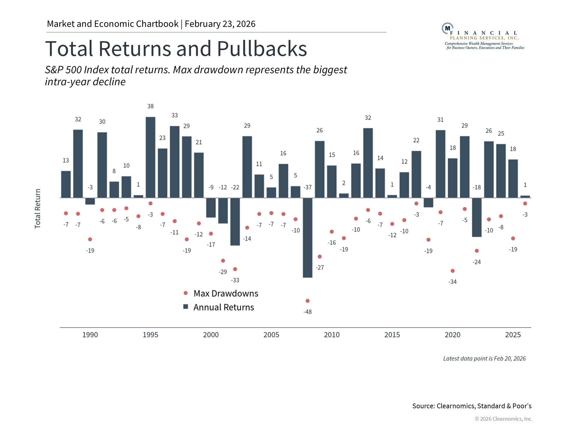 Third, and perhaps most consequentially for markets, the underlying fundamentals of the economy remained solid. Inflation continued to moderate, with the Consumer Price Index rising just 2.4% year-over-year in January 2026. Real GDP expanded at a modest but healthy 2.2% pace for all of 2025, according to the latest data from the Bureau of Economic Analysis. Corporate earnings also remained strong, supporting valuations and long-run growth expectations.